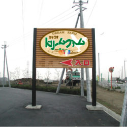 看板枠から柱までステンレスHRで加工しました。 文字面は屋外用長期サインシートを加工貼り付けてあります