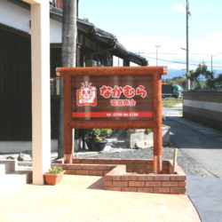 忍術屋敷附近で営業をされている事もあり、和風看板をしたいとの事でしたので丸太を加工し銅板を巻いて仕上げました